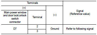 3. Check signal between main power window and door lock/unlock switch connector and ground with oscilloscope.