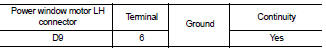 3. Check continuity between power window motor LH connector and ground.