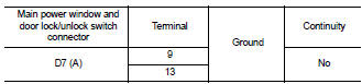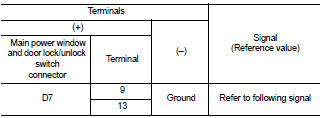 3. Check signal between main power window and door lock/unlock switch connector and ground with oscilloscope.