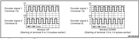 Does front door glass LH perform AUTO open/close operation normally with main power window and door lock/unlock switch? Is the inspection result normal? YES >> Encoder operation is OK.