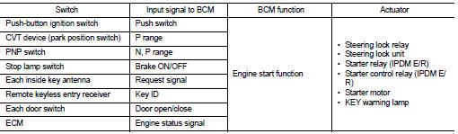 Nissan Altima (L32) 2007-2012 Service Manual: Engine start function