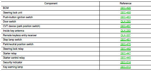 For details relating to starting the engine using key slot, refer to SEC-417, "System Description".