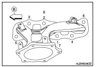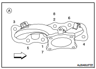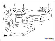 • Install the exhaust manifold nuts in the order as shown RH (A) and LH (B).