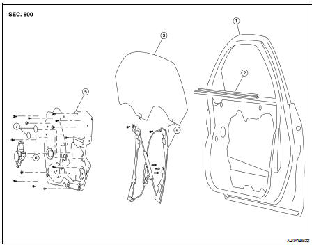 Nissan Altima (L32) 2007-2012 Service Manual: Front door glass