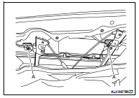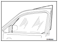 • Lower the door glass slightly [approximately 10 to 20 mm (0.39 to 0.79 in)] and check that the clearance to the sash is parallel. If the clearance between the door glass and sash is not parallel, loosen the regulator bolts, guide rail bolts, and door glass and guide rail bolts to correct the glass position.