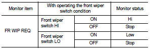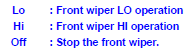 2. While operating the test item, check that front wiper LO/HI operation and OFF.