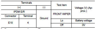 2. While operating the test item, check that front wiper LO operation and OFF.