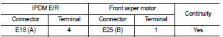 3. Check continuity between IPDM E/R harness connector (A) and front wiper motor harness connector (B).