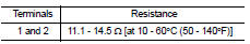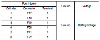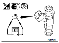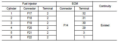 3. Check resistance between fuel injector terminals as per the following.