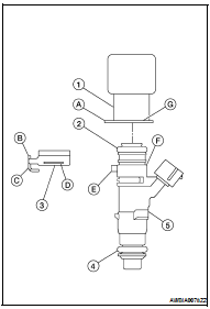 2. Install the fuel injector (5) into the fuel tube (1) with the following procedure: • Do not reuse the clip (3), replace it with a new one.