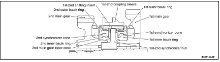 Triple-cone synchronizer are adopted for 1st and 2nd gears to reduce operating force of the shift lever.