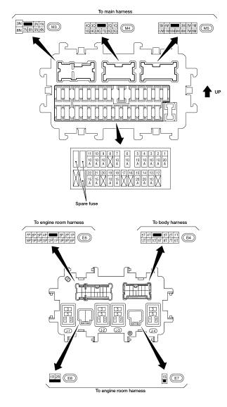 Nissan Altima (L32) 2007-2012 Service Manual ≻ Power supply, ground & circuit elements sedan ≻ Component diagnosis ≻ Fuse block - junction box (J/B)