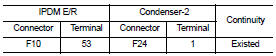 3. Check the continuity between IPDM E/R harness connector and condenser-2 harness connector.