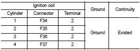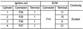 2. Check the continuity between ECM harness connector and ignition coil harness connector.