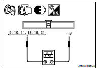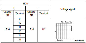 2. Read the voltage signal between ECM harness connector terminals with an oscilloscope.