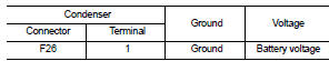 4. Check the voltage between condenser harness connector and ground.