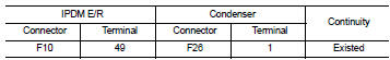 3. Check the continuity between IPDM E/R harness connector and condenser harness connector.