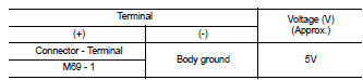 3. Check voltage between intake sensor connector M69 terminal 1 and ground.
