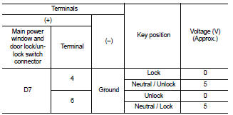 Is the inspection result normal? YES >> Replace main power window and door lock/unlock switch. Refer to PWC-91, "Removal and Installation".