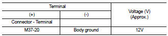 2. Check voltage between front air control connector M37 terminal 20 and ground.