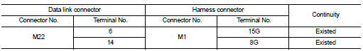 NO >> Repair the main line between the data link connector and the harness connector M1.