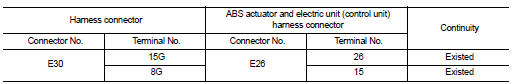 NO >> Repair the main line between the harness connector E30 and the ABS actuator and electric unit (control unit).