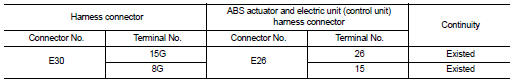 NO >> Repair the main line between the harness connector E30 and the ABS actuator and electric unit (control unit).