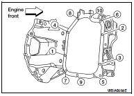 • When removing the front and rear engine through bolts and nuts, lift the engine up slightly for safety.