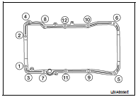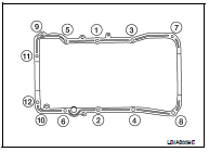9. Install the lower oil pan. Tighten the lower oil pan bolts in order as shown.