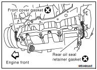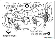 3. Install the front cover gasket and rear oil seal retainer gasket as shown.