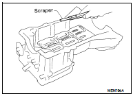 23. If re-installing the original oil pan, remove the old sealant from the mating surfaces using a scraper.