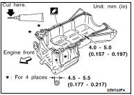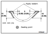 • Be sure the sealant is applied to a limited portion as shown, and the sealant is 4.0 - 5.0 mm (0.157 - 0.197 in) or 4.5 - 5.5 mm (0.177 - 0.217 in) wide.