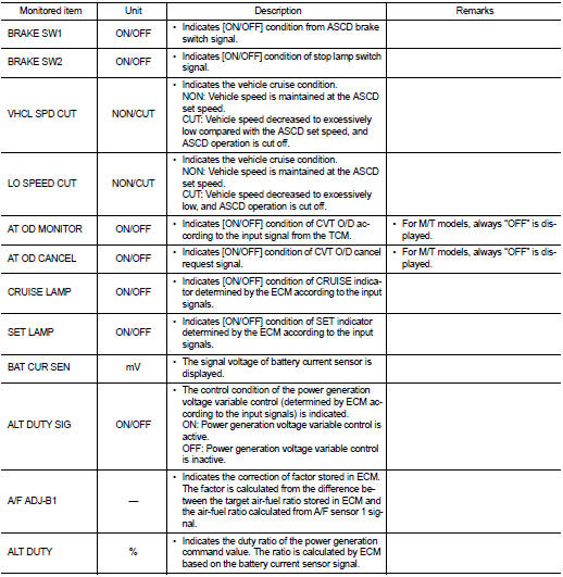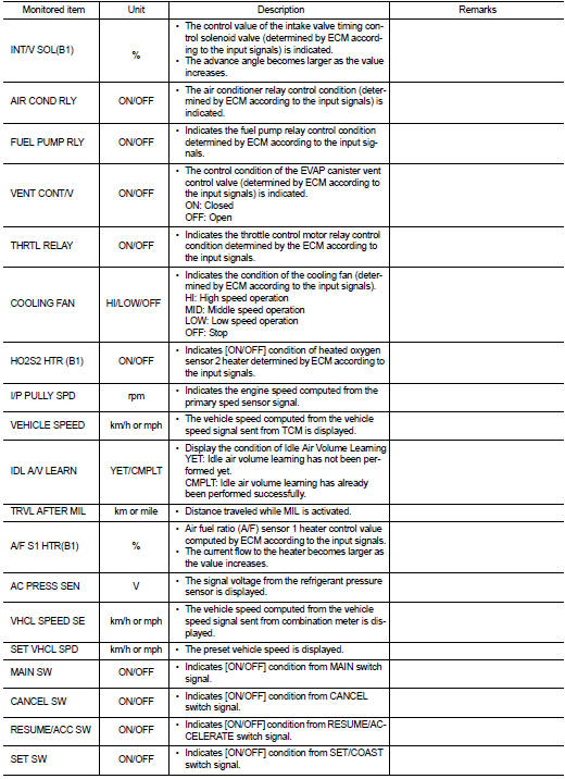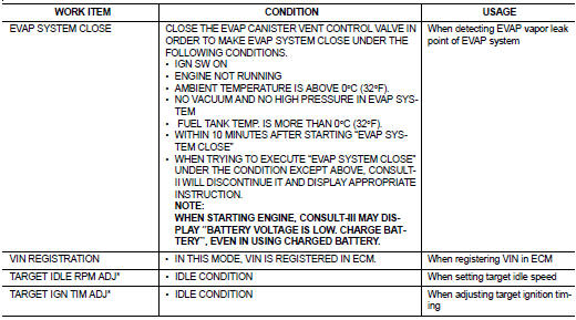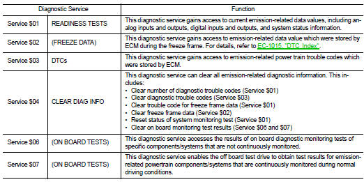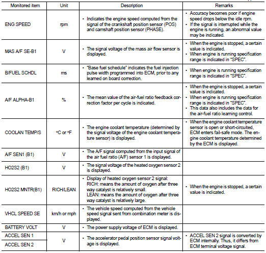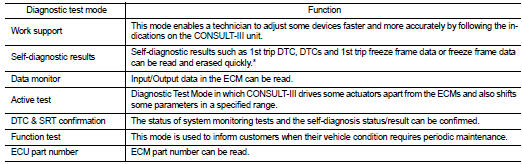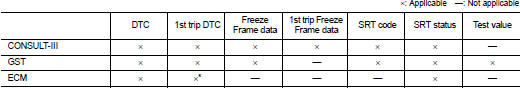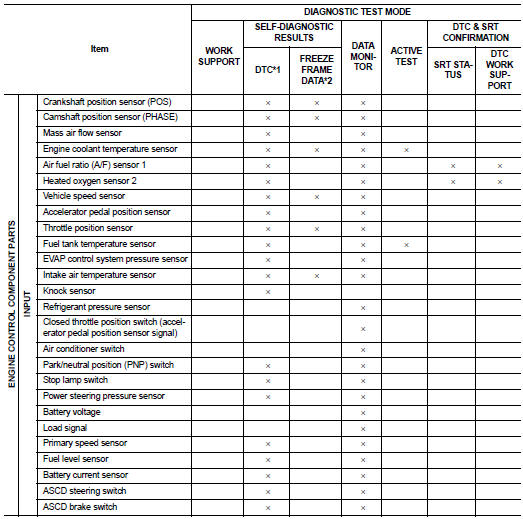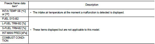 *2: This mode includes 1st trip freeze frame data or freeze frame data. The items appear on CONSULT-III screen in freeze frame data mode only if a 1st trip DTC or DTC is detected. For details, refer to EC-641, "Diagnosis Description".
