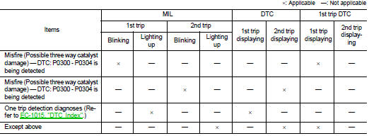 *1: When the same malfunction is detected in two consecutive trips, MIL will light up.