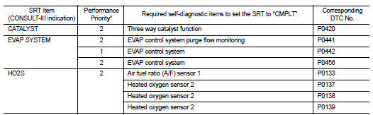 *: If completion of several SRTs is required, perform driving patterns (DTC CONFIRMATION PROCEDURE), one by one based on the priority for models with CONSULT-III.