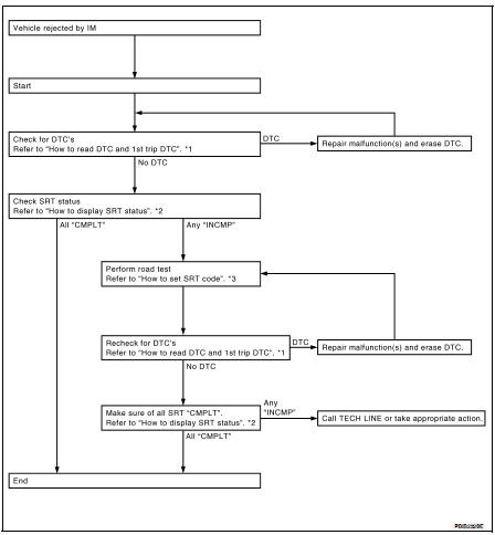 If a vehicle is rejected for a State emissions inspection due to one or more SRT items indicating “INCMP”, use the information in this Service Manual to set the SRT to “CMPLT”.