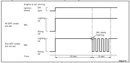 • When any SRT codes are not set, MIL will flash periodically for 10 seconds.