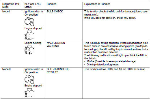 • Output of a DTC indicates a malfunction. However, GST or the Diagnostic Test Mode II do not indicate whether the malfunction is still occurring or has occurred in the past and has returned to normal.