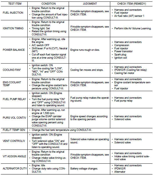 *: Leaving cooling fan OFF with CONSULT-III while engine is running may cause the engine to overheat.