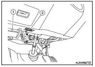 2. Connect “GST” to data link connector (2), which is located under LH dash panel near the hood opener handle (1).