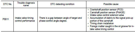 NOTE: If DTC P0011 is displayed with DTC P0075, first perform the trouble diagnosis for EC-867, "DTC Logic".