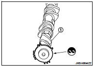 • Accumulation of debris to the signal plate of camshaft (1) rear end • Chipping signal plate of camshaft rear end