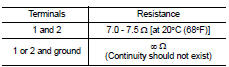2. Check resistance between intake valve timing control solenoid valve terminals as per the following.