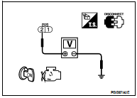 4. Check the voltage between intake valve timing control solenoid valve harness connector and ground with CONSULT-III or tester.