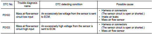 Nissan Altima (L32) 2007-2012 Service Manual: P0102, P0103 maf sensor