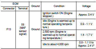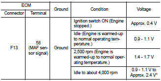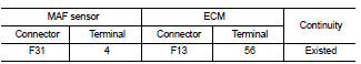 1. Check the continuity between MAF sensor harness connector and ECM harness connector.