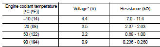 *: These data are reference values and are measured between ECM terminals 46 (Engine coolant temperature sensor) and ground.
