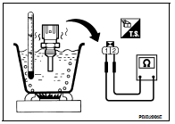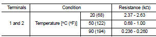 4. Check resistance between engine coolant temperature sensor terminals as follows.