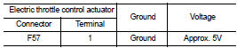 3. Check the voltage between electric throttle control actuator harness connector and ground.