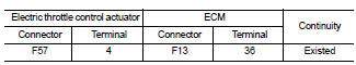 1. Check the continuity between electric throttle control actuator harness connector and ECM harness connector.